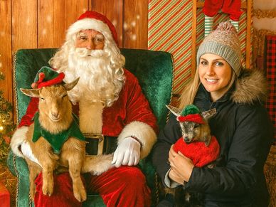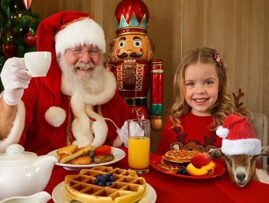 Join us for a heartwarming morning where families can enjoy a delicious holiday breakfast, meet Santa Claus, and snuggle his adorable goat elves dressed in their Christmas best.