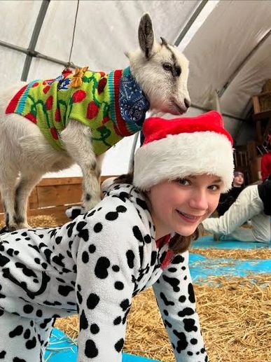 From joyful photo sessions with Santa & the Goat Elves to cozy Holiday Pajama Goat Yoga, every experience at the farm blends laughter, creativity, and connection.