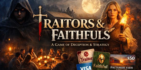 Join us April 24, 2025 for a 3-hour immersive social strategy experience inspired by classic deception-style competitions. This adults-only evening blends secret roles, interactive missions, dramatic Round Table votes, and unexpected twists — all set against the cozy backdrop of the farm.